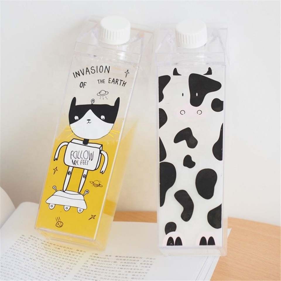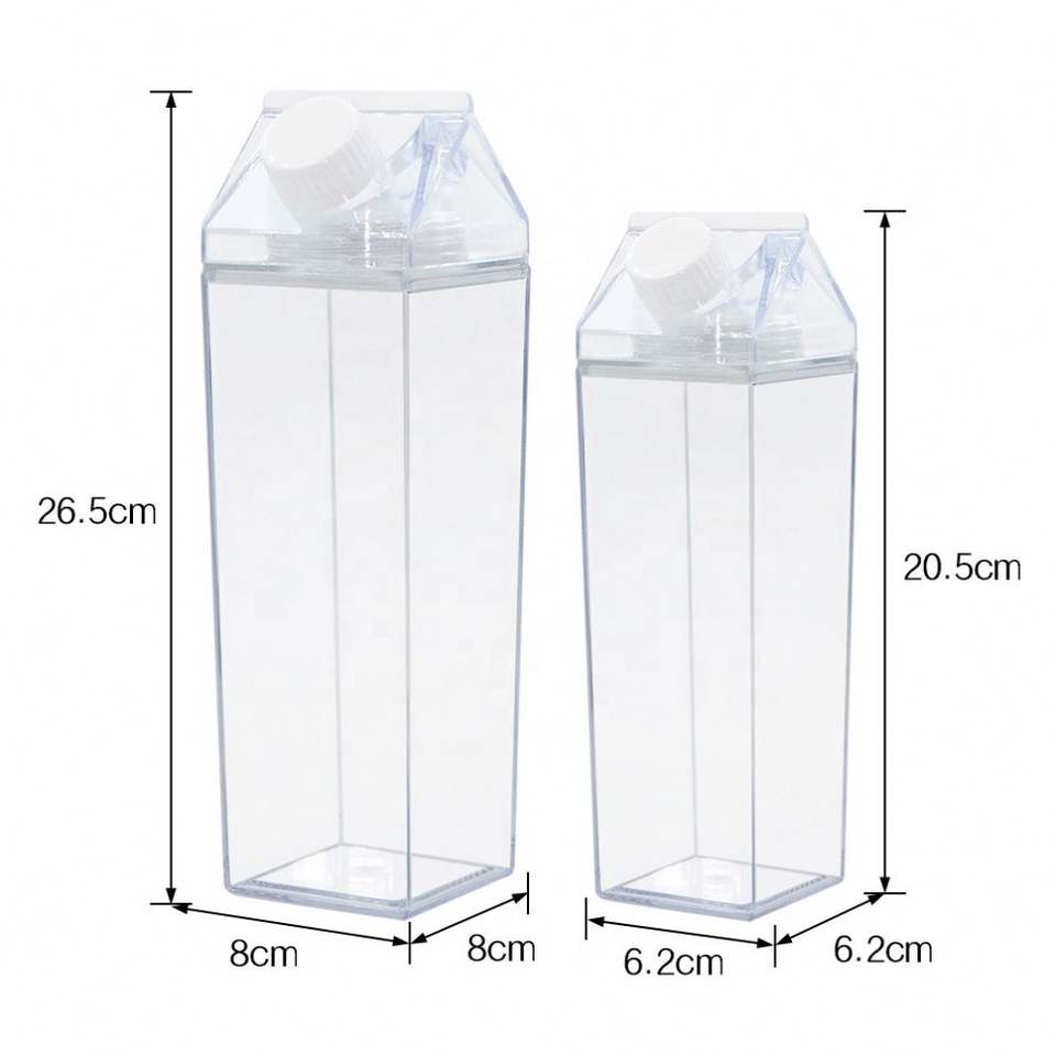 Milk Carton Clear Square Milk Box Tumbler Bpa Free Plastic Water Bottle 500Ml 1000Ml Acrylic Clear Milk Carton Water Bottle