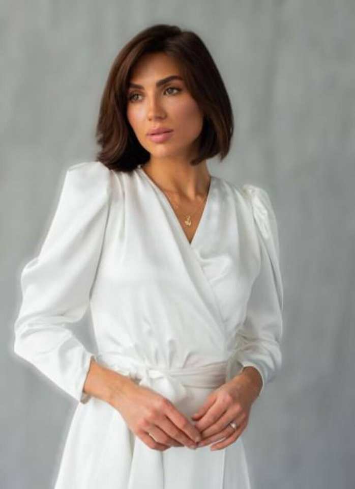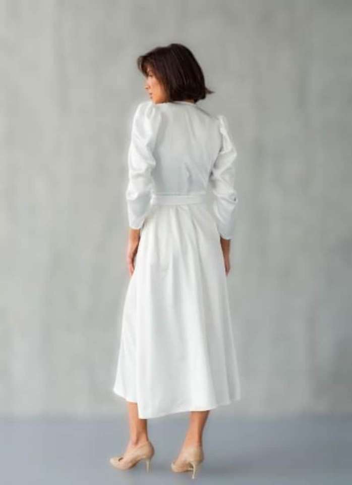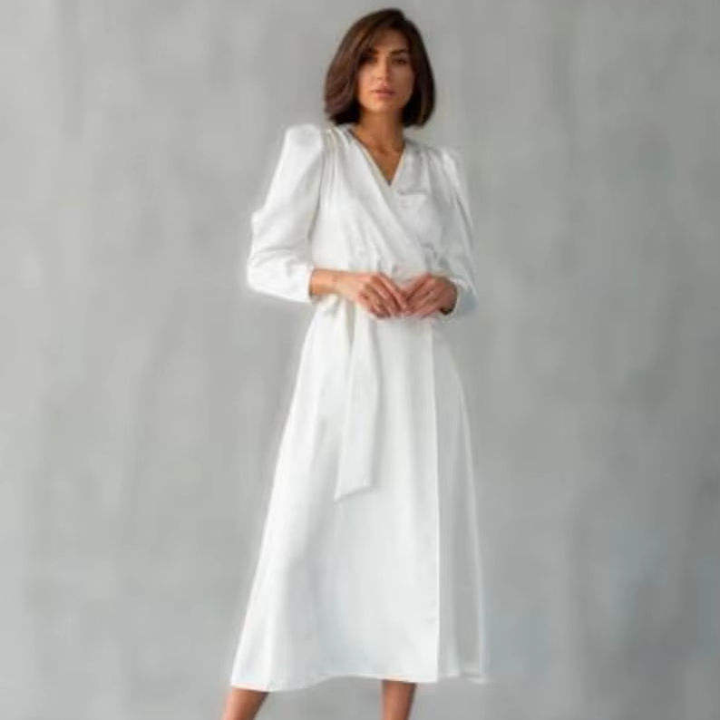 Milk White Wrap Satin Midi Dress for Civil Wedding Courthouse Elopement Engagement or Bridal Shower Gown for Bride Size S M L