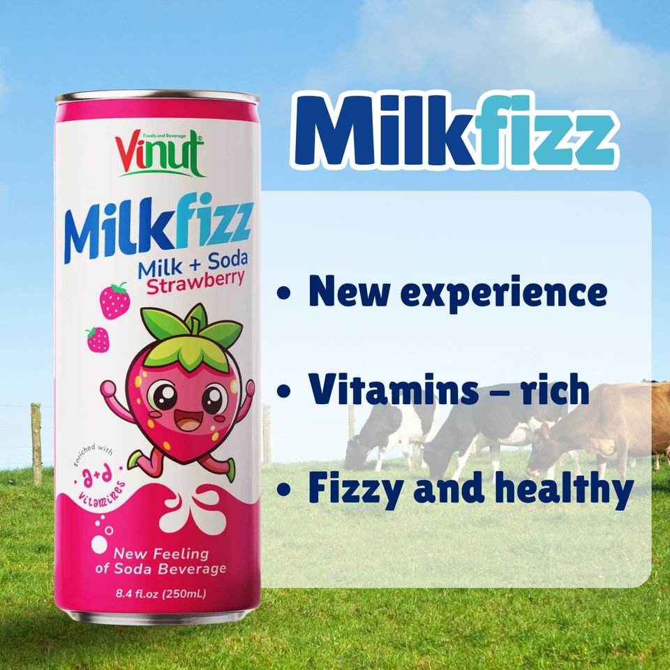 Milkfizz Milk & Soda 250ml Can Strawberry Drink No Add Sugar - OEM ODM Customizable Beverages Wholesale Price Free Sample