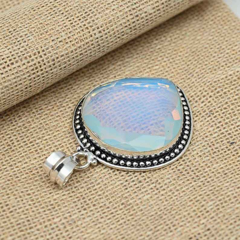 Milky Opal Gemstone Jewelry 925 Solid Sterling Silver Pendant Handmade Beautiful Love Anniversary Gift For Her