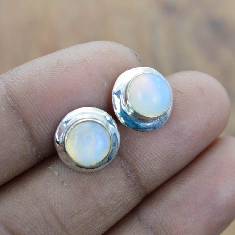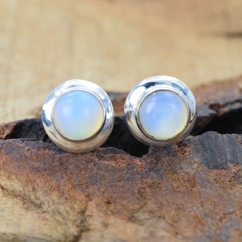 Milky Opalite Stud Earrings 925 Sterling Silver Spinner Gemstone Christmas October Birthstone Handmade Stud Earrings Jewelry