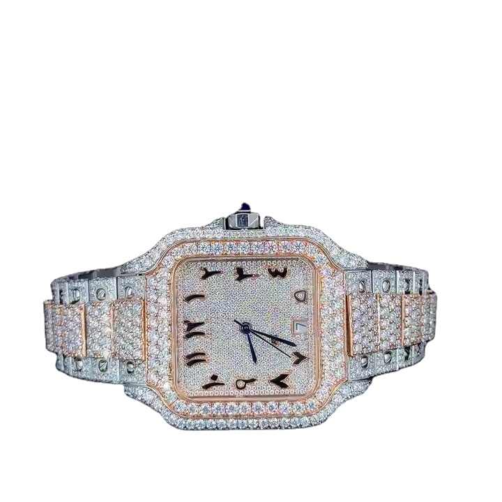 Millionaire Watches VVS Clarity Moissanite Watch Diamond Fashionable Arabic Analog Quartz Watch Available for Bulk Buyers