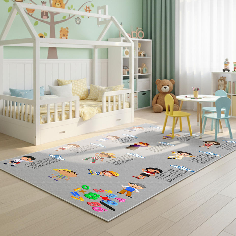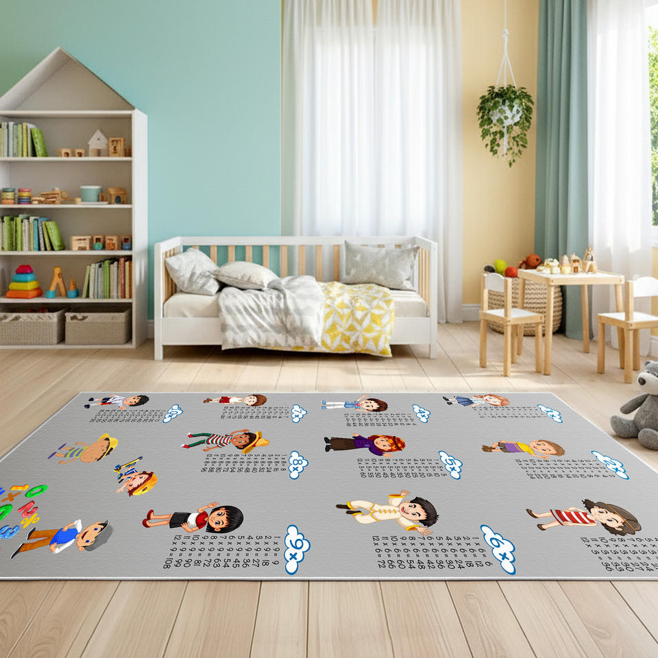 Mimoza Educational Chenille Kids Rug Multiplication Table Carpet Learning Math Classroom Nursery Playroom PET Friendly Non-Slip