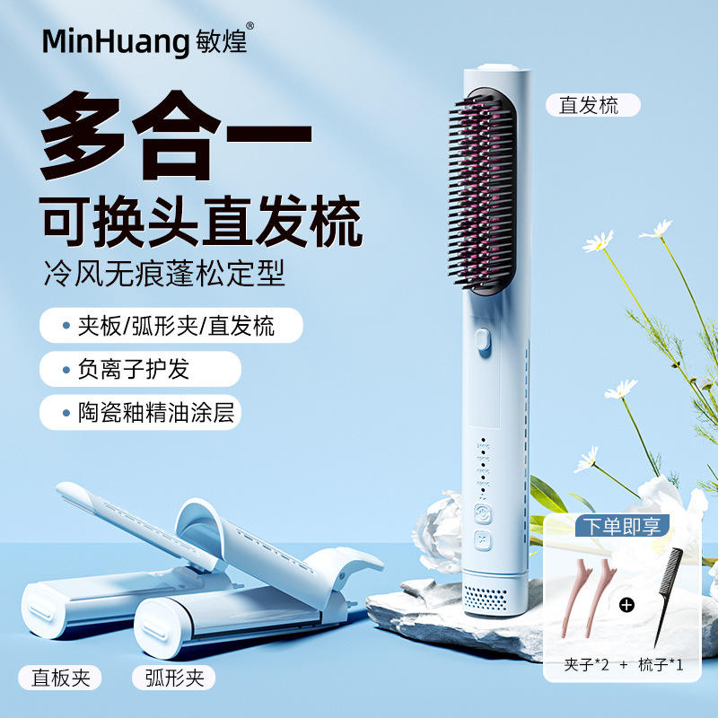 MinHuang 3 In 1 Straightening Comb With Curved Plate Cool Air Styling For Women High Volume Hair