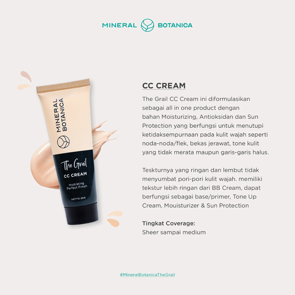 Mineral Botanica The Grail Hydrating Perfect Finish CC Cream OEM ODM Make Up Base/Primer Sun Protection Tinted Daily Moisturizer