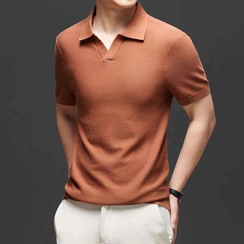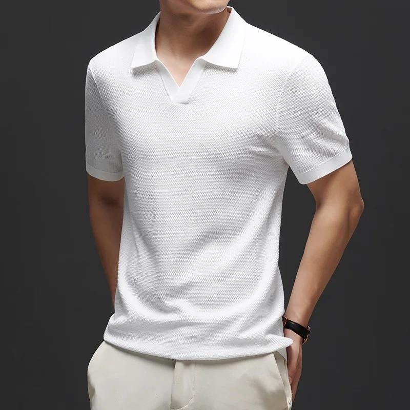 Minglu Mulberry Silk Knitted Summer Men's Polo Shirts Luxury Short Sleeve Solid Color Business Casual Cotton Lyocell Man Tees