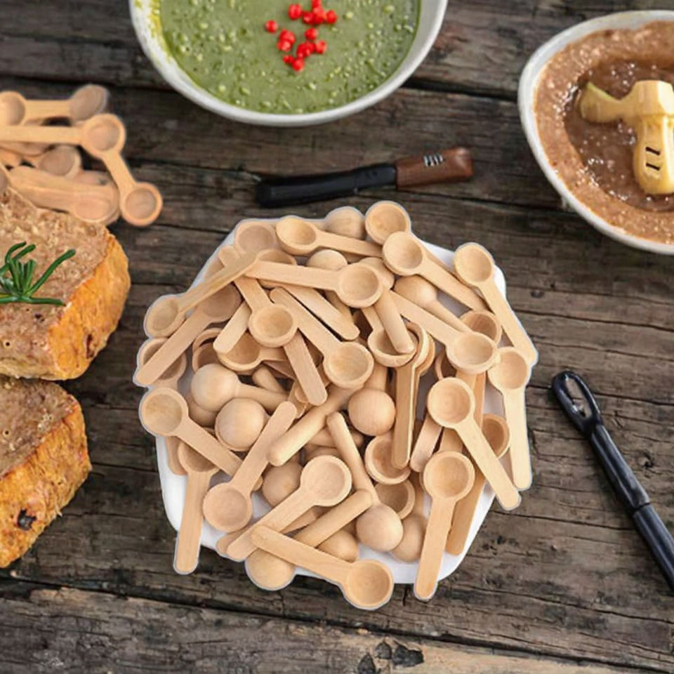 Mini 2.5x6.8mm Modern Disposable Wooden Spoon for Party Bath Salt Spice Honey & Coffee-Small Capacity