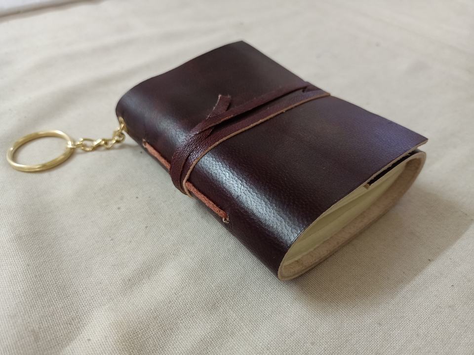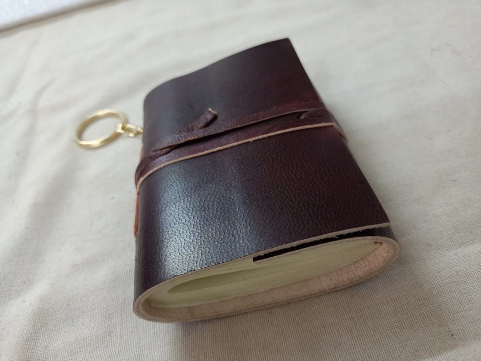 Mini A5 Leather Journals with Saddle Stitched Binding Key Ring for Travel Supply Stores Made with Cotton Rag Handmade Papers