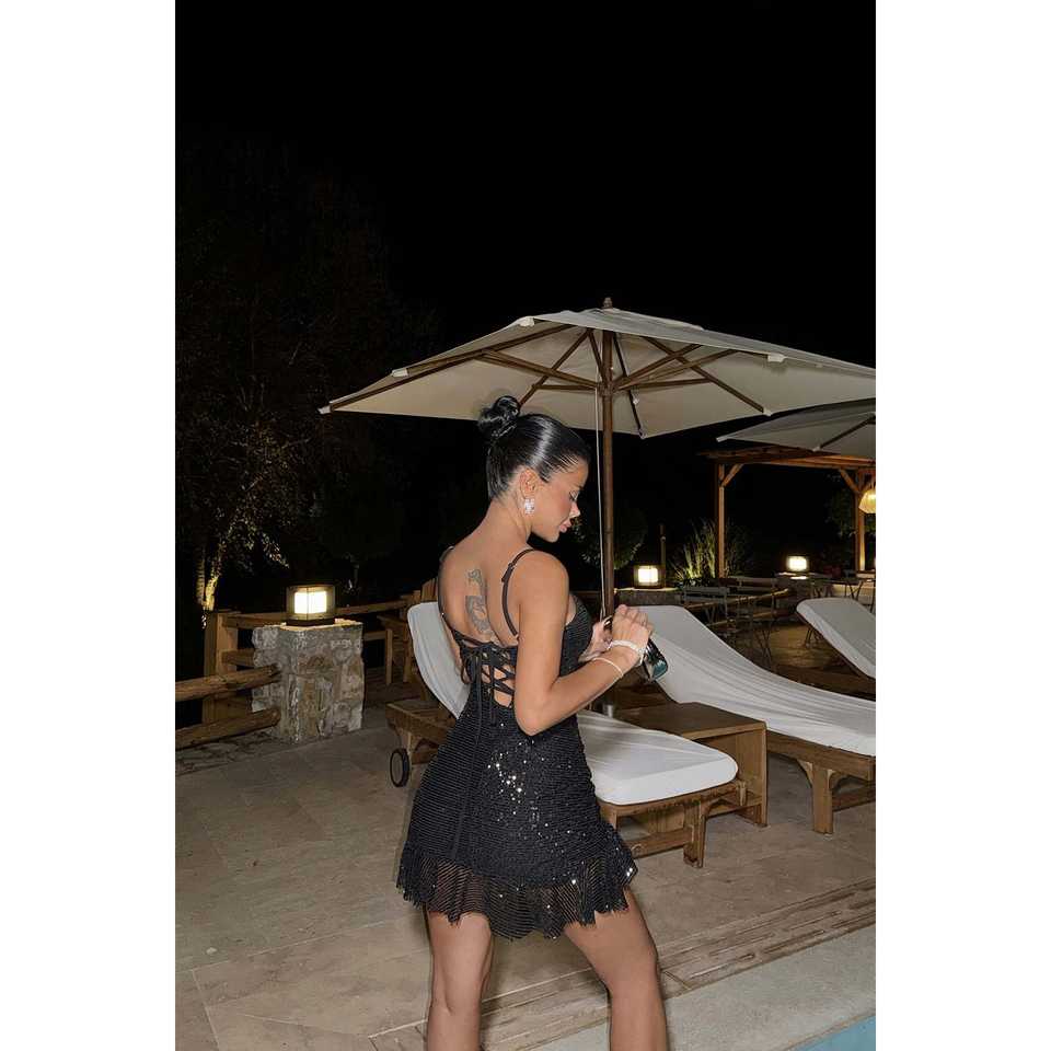 Mini Black Evening Dress with Sequin Details XS Size Formal Party Style Empire Waistline for Bride and Mother of Bride