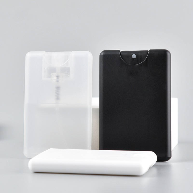 Mini Black White Clear 20ml Hand Sanitizer Pocket Card Spray Bottle Perfume Credit Sample Card Spray Bottle with Custom logo