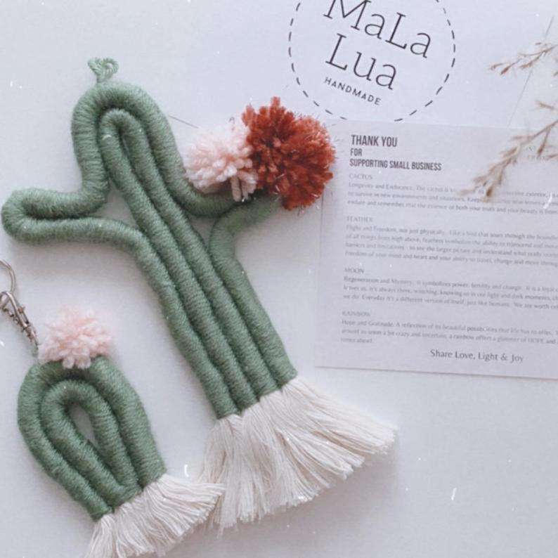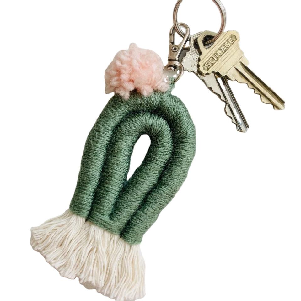 Mini Cactus Keychain, Macrame Cactus Bag Charm, Bag Tag