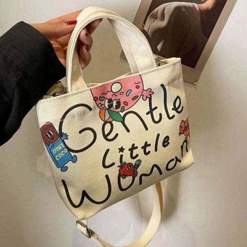 Mini Canvas Tote Bag Revycleable 12Oz Colorful Canvas Bags Women Handbags for Girl Shoulder Bag Office Travel Essentials