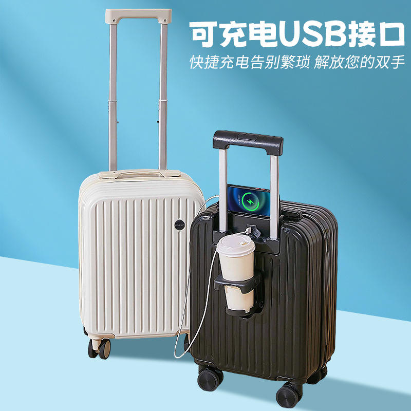 Mini Carry-On Suitcase 18-Inch With Cup Holder And Lock Unisex For Short Trip Macaron Colors Stripe Pattern