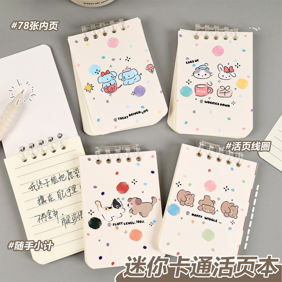 Mini Cartoon Loose Leaf Notebook 80 Sheets Lined Portable Detachable For Students Writing Notebooks