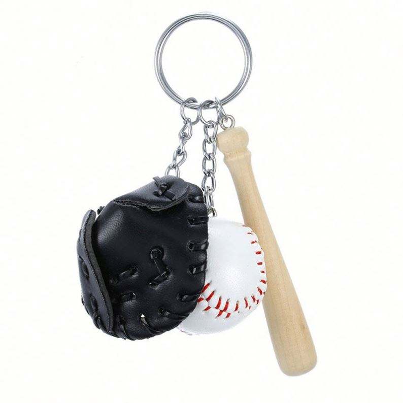 Mini Colorful Baseball Pendant & Leather Keychain Sports Event Souvenir for Gift & Key Holder Made of Metal & Alloy