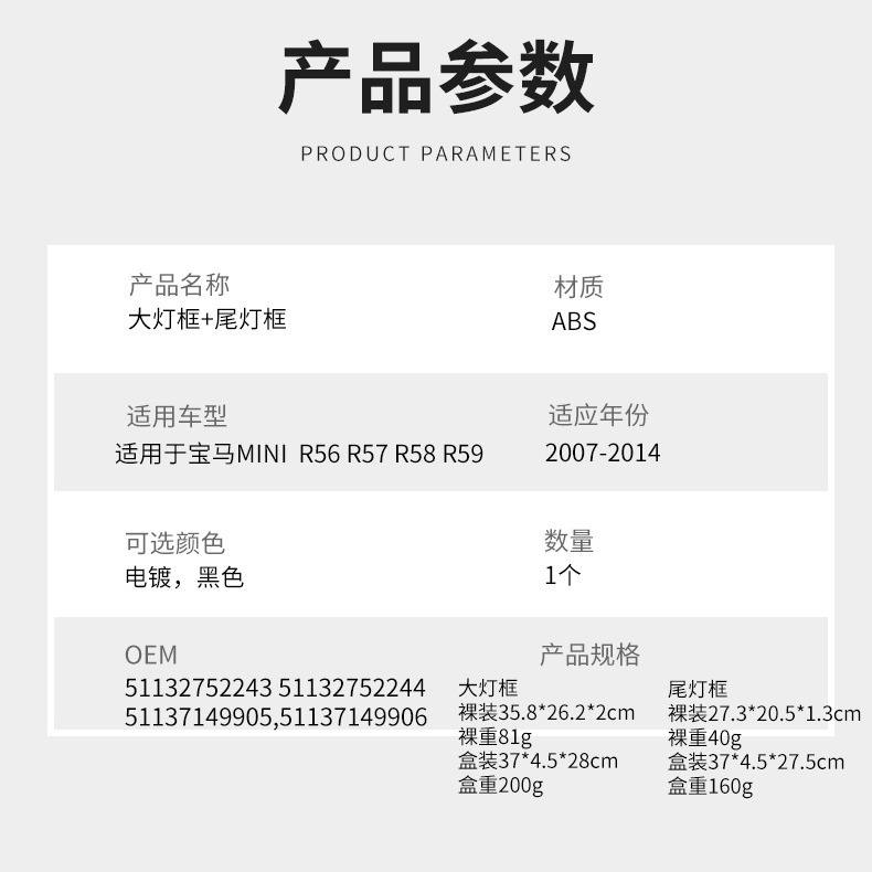 Mini Cooper R56 R57 R58 R59 Headlight And Taillight Trim ABS Frame 2007-2014 Black Or Chrome