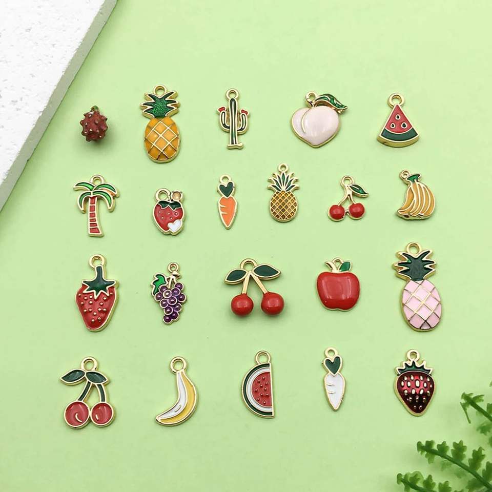 Mini DIY Fruit Pendant Pineapple Strawberry Cherry Apple Watermelon Alloy Charms Bracelet Necklace Earring Accessories