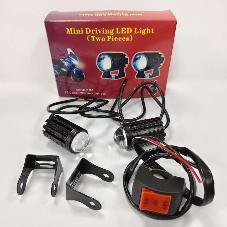 Mini Driving LED Light 2pc White Yellow Dual Color Spotlight Set For Motorcycle Front Retrofit Upgrade Aluminum Alloy