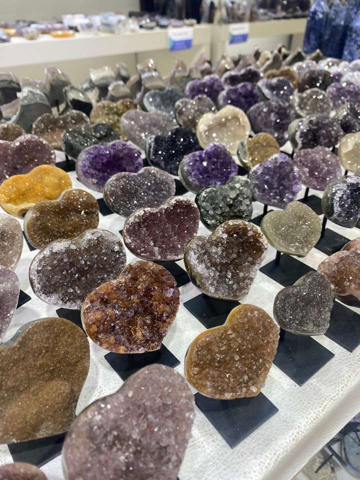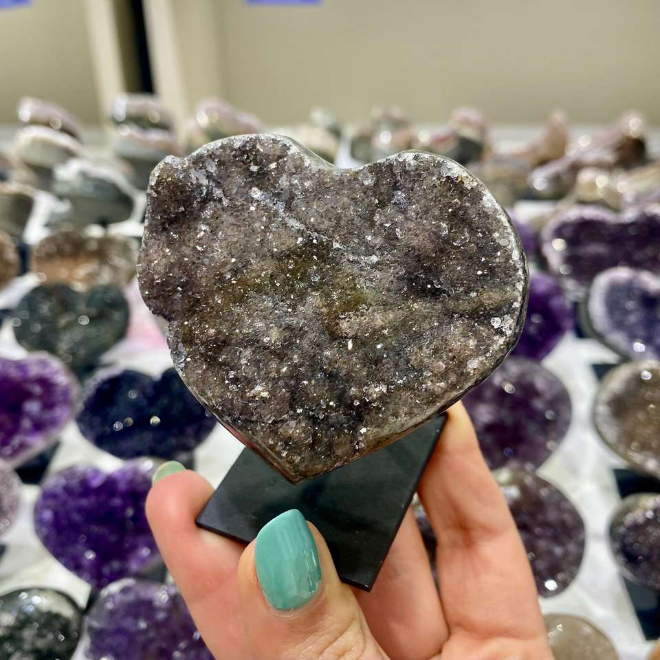 Mini Druzy Hearts Crystal Crafts Unique Product Displayed on Stand Other Crystal Crafts Collection