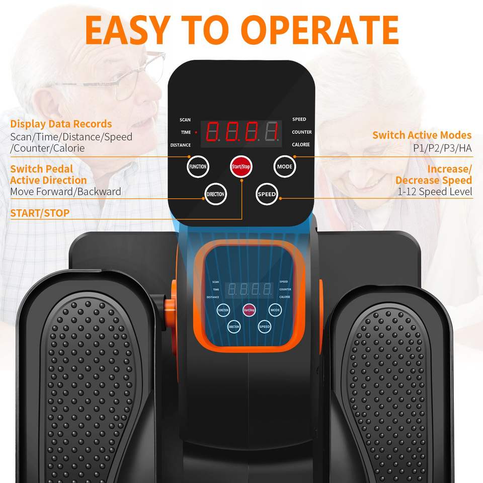 Mini Electric Seated Pedal Exerciser Quiet Compact Home Elliptical Trainer 12 Adjustable Speeds Display Plate Loaded Machine