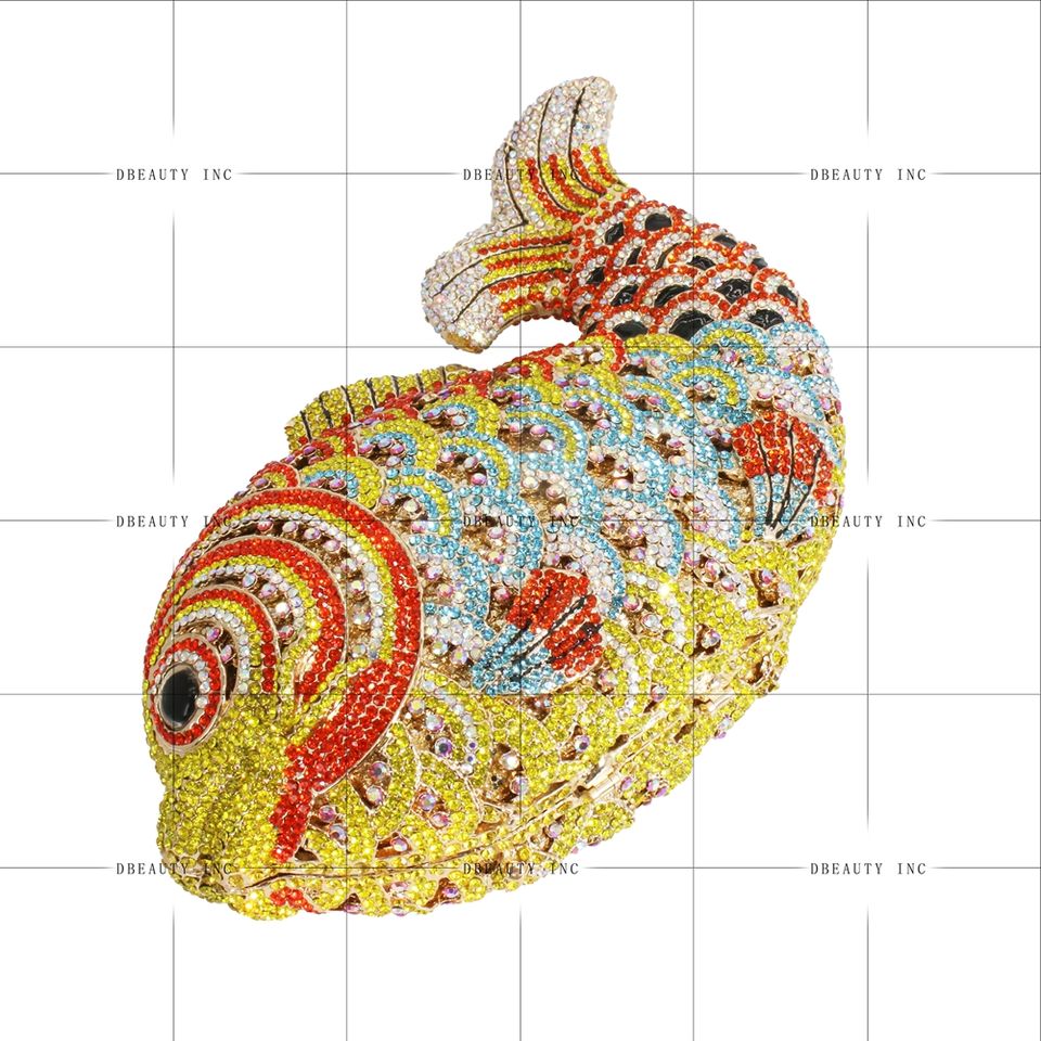 Mini Fish Women Cute Clutch Luxury Rhinestones Purse Sparkling Banquet Handbag Wedding Party Evening Bag