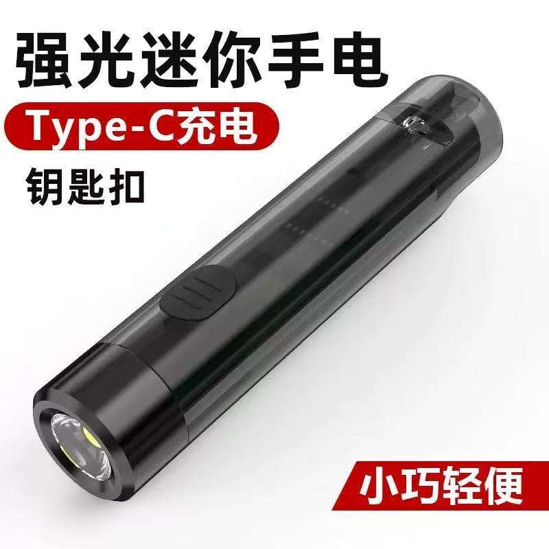 Mini Flashlight Led Rechargeable Battery Type C Portable Outdoor Keychain Light With Emergency Whistle Black
