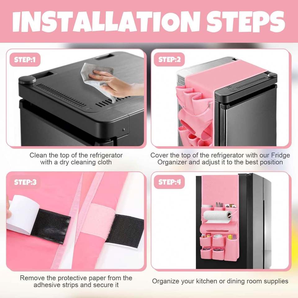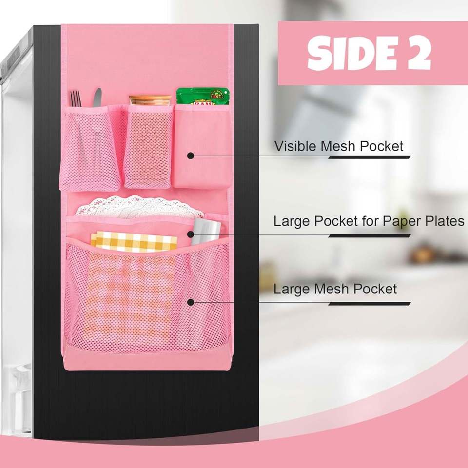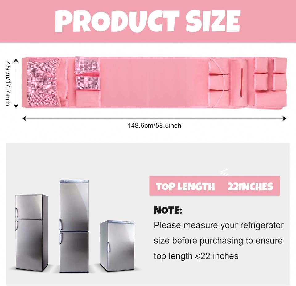 Mini Fridge Organizer Dorm Essentials Dust Cover with 14 Pockets for Most Household Refrigerators Hanging Mini Caddy Organizer