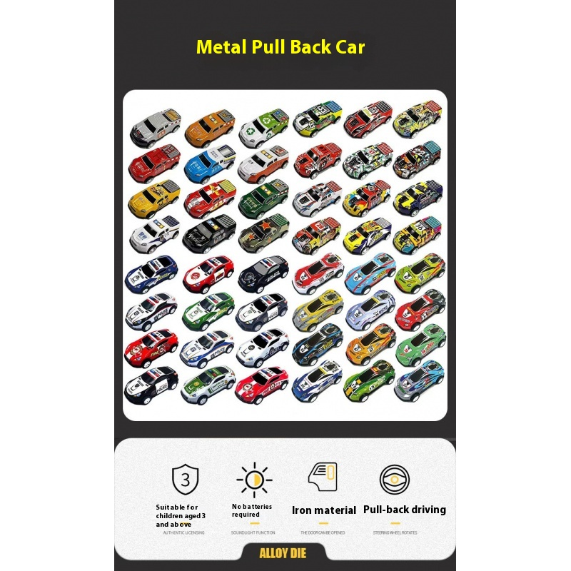 Mini Gold Racing Series Toy Car Cartoon Style Tinplate Tin Model Car Set for Children's Parties Day Care Plastic Toy Vehicle