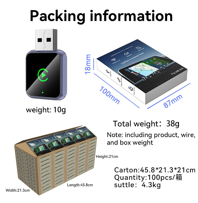 Mini Gray 2in1 Car Play Dongle Universal Smart Plug-and-play Wireless Android Auto Carplay Adapter for IOS Android