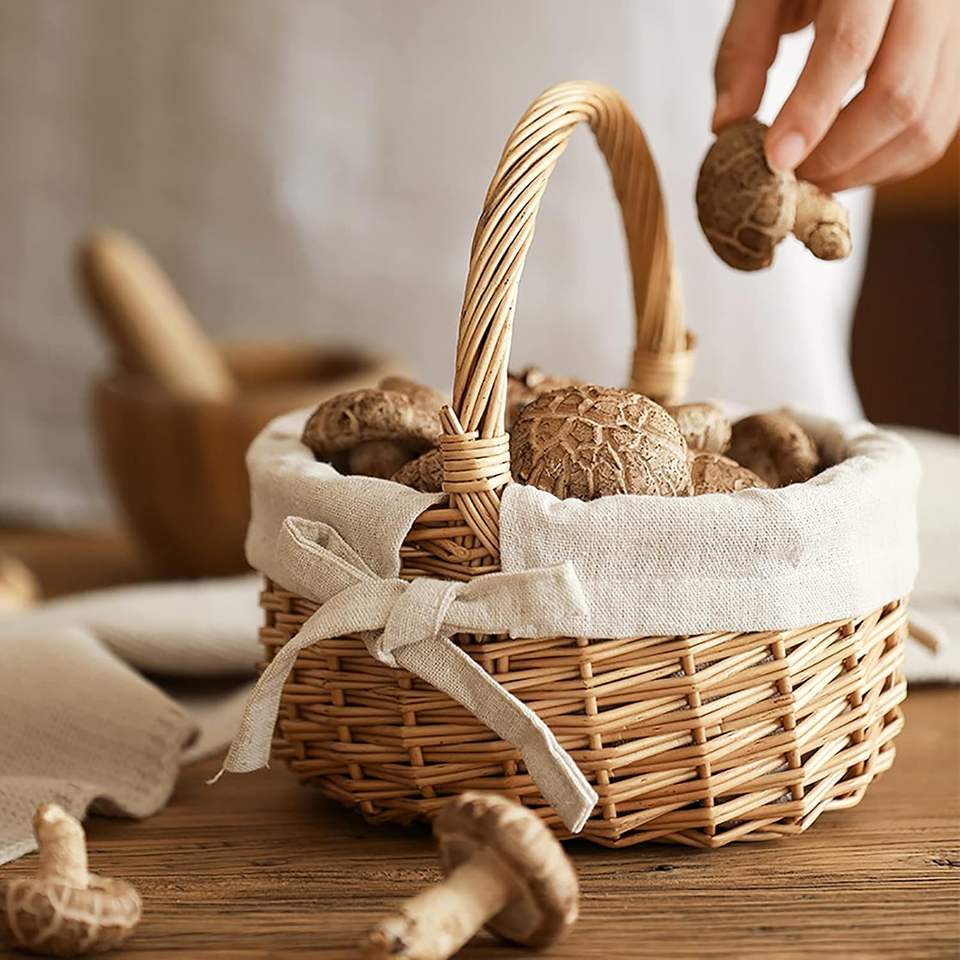 Mini Handwoven Rattan Storage Basket with Fabric Liner Small Round Bamboo Organizer Decorative Desktop Sundries Basket for Home