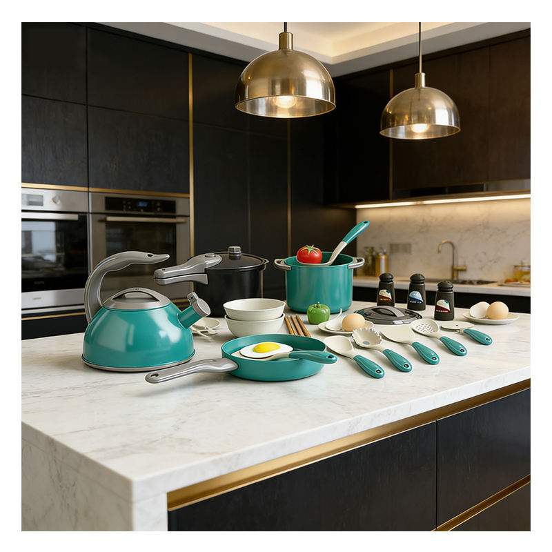 Mini Kitchen Cooking Toy Set Toddler Chef Station Sink Shelf Cabinet Storytelling Growth Parent Child Interaction