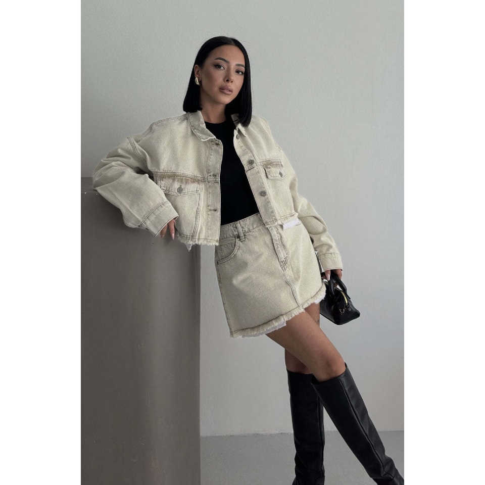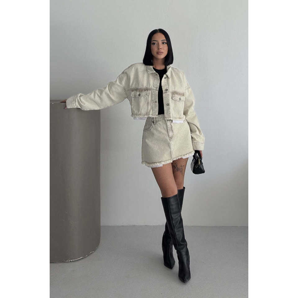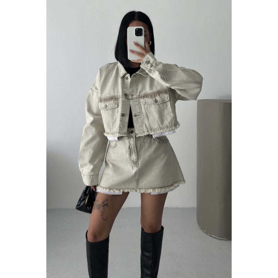 Mini Kot Etek Women's Denim Skirts Mini Faux Leather Mini Skirt with Lace Trim Size S-M