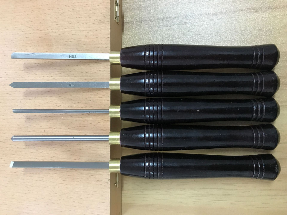 Mini Lathe Five-Piece Carving Chisel Set with Wood Handle for Carving & Punching