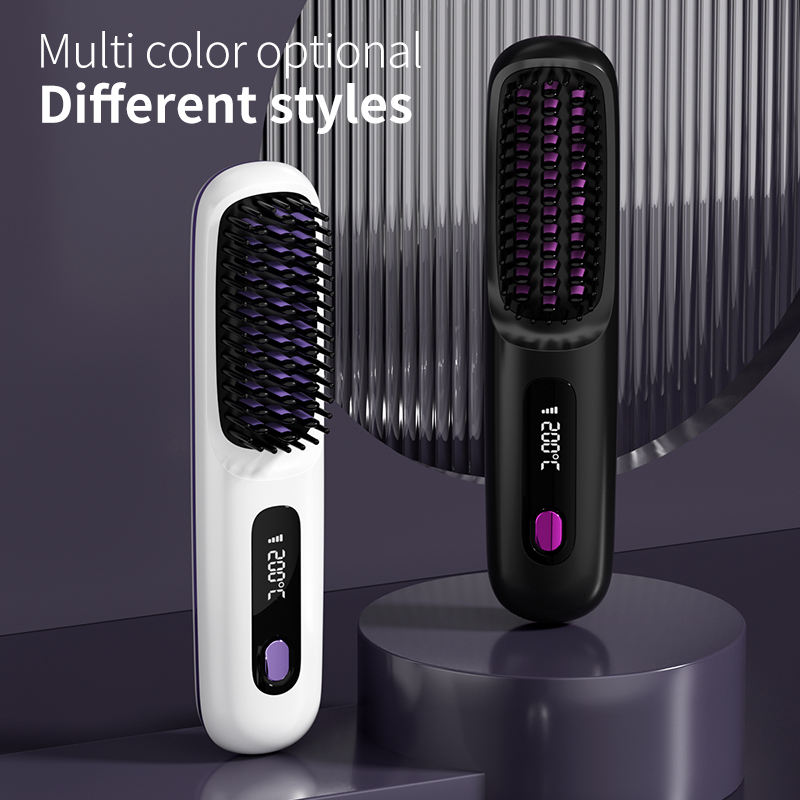 Mini Lightweight Portable Battery-Powered Wireless Hair Straightener Negative Ions Nylon Brush 3 Temperature Settings Type-C