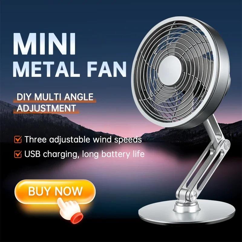 Mini Metal USB Desktop Fan with Adjustable Angles Quickly Charging, Energy Saving, Perfect Cooling Solution