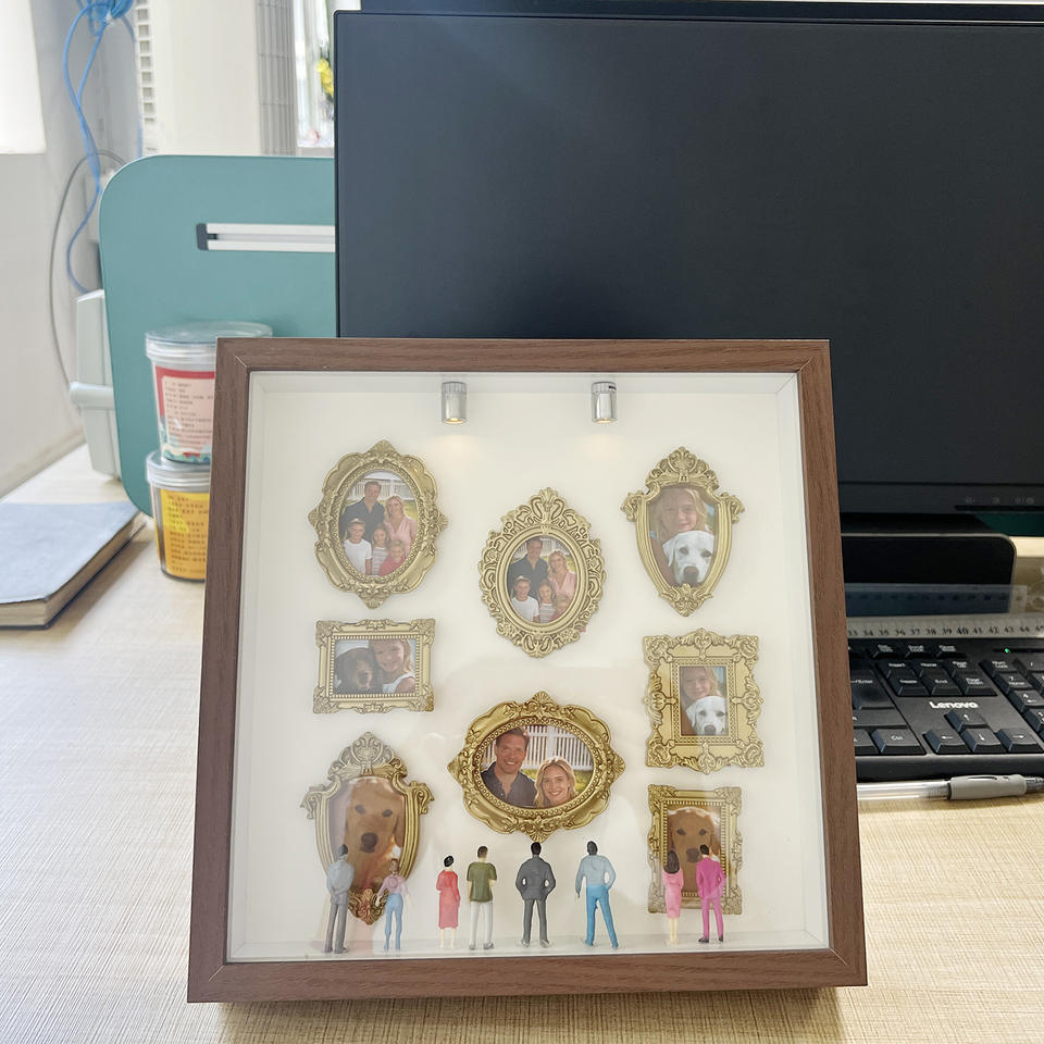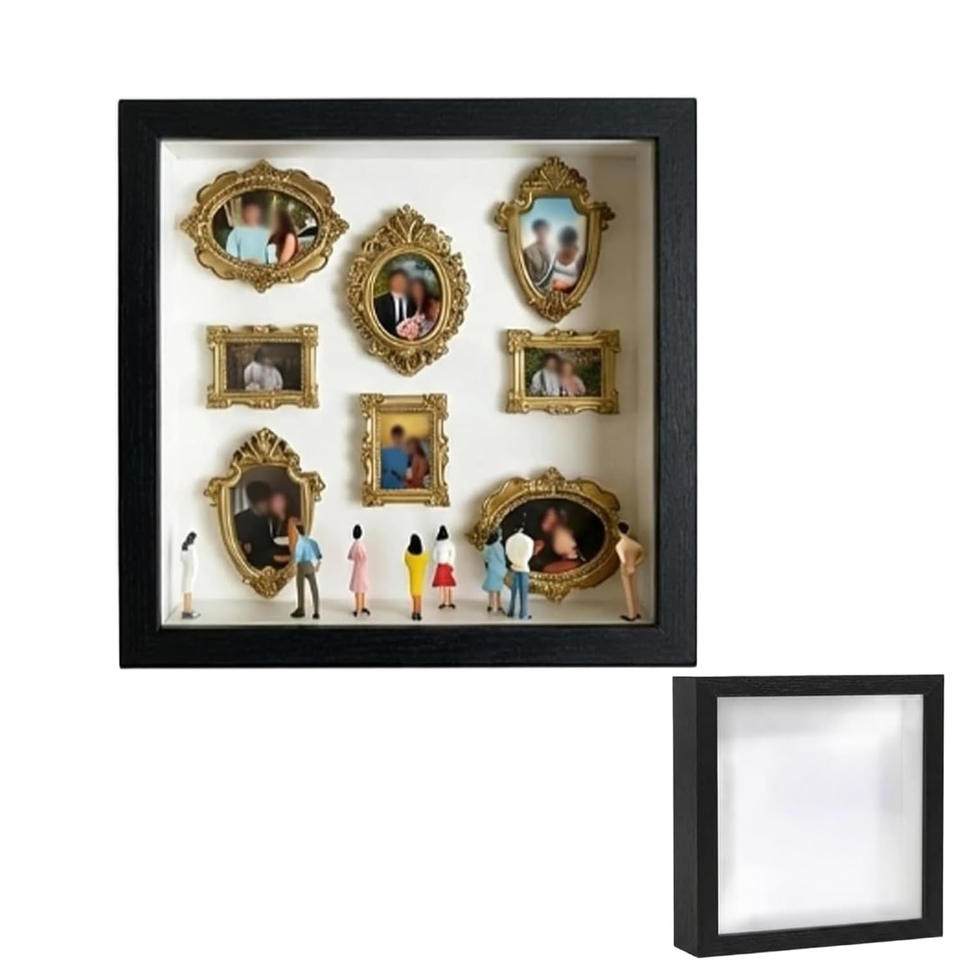 Mini Museum Shadow Box Photo Frame Square Black Resin Vintage Handmade DIY Portrait Display With Lights