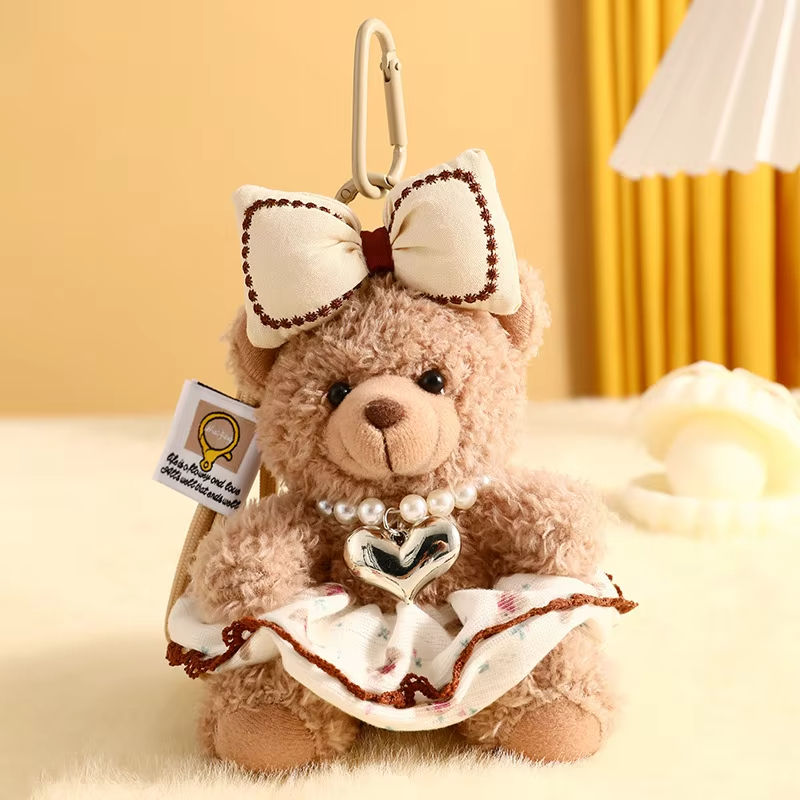 Mini Pearl Heart Bow Skirt Teddy Bears Soft Stuffed Animal Toys Valentines Keychain Featuring a Teddy Bear Couple