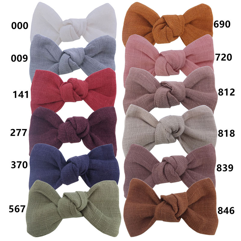 Mini Petite Knot Linen Hair Bow Toddler Baby Girl Kids Fully Lined Clips Barrettes Hairgrips Small Hair Bow Accessories