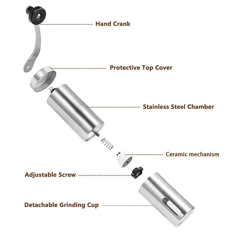 Mini Portable Hand Stainless Steel Manual Coffee Grinder with Adjustable Setting Coffee Brushed Stainless Steel Bean Grinder
