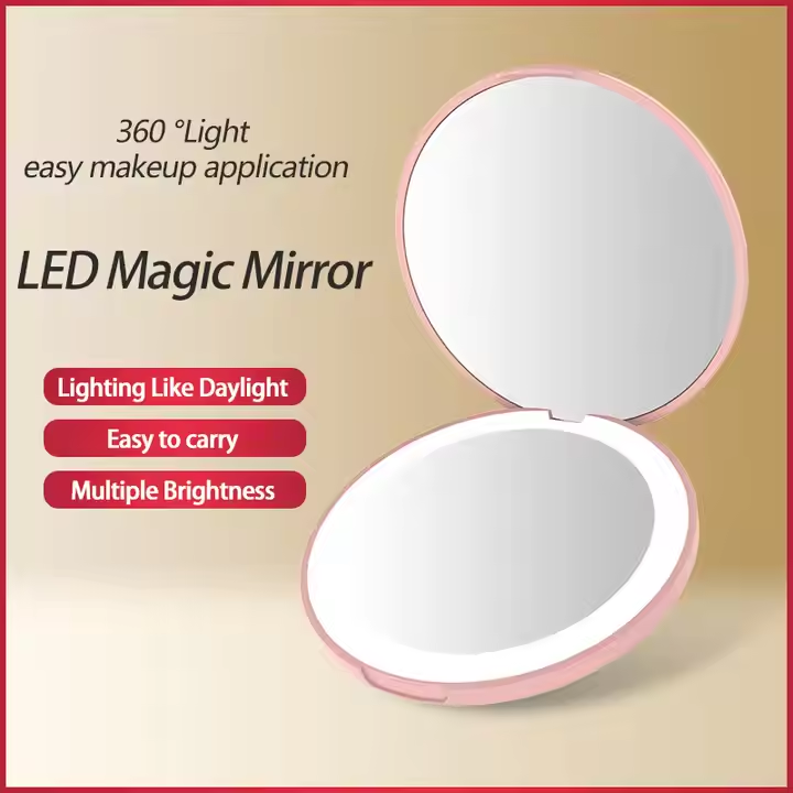Mini Portable Led Makeup Mirror With Light Makeup Girl With a Round Small Mirror Wholesale