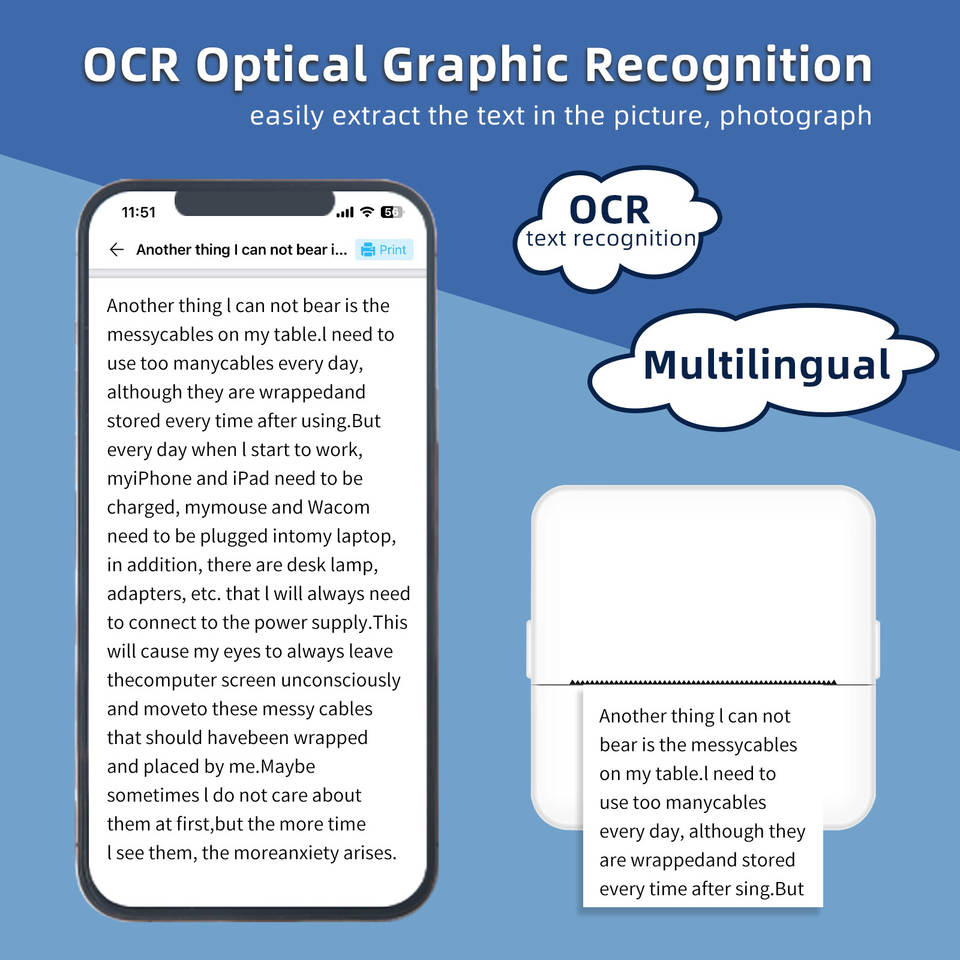 Mini Portable Printer Pocket Wireless Smart Inkless Printer Label Photo Printing 57mm Thermal Paper Printer