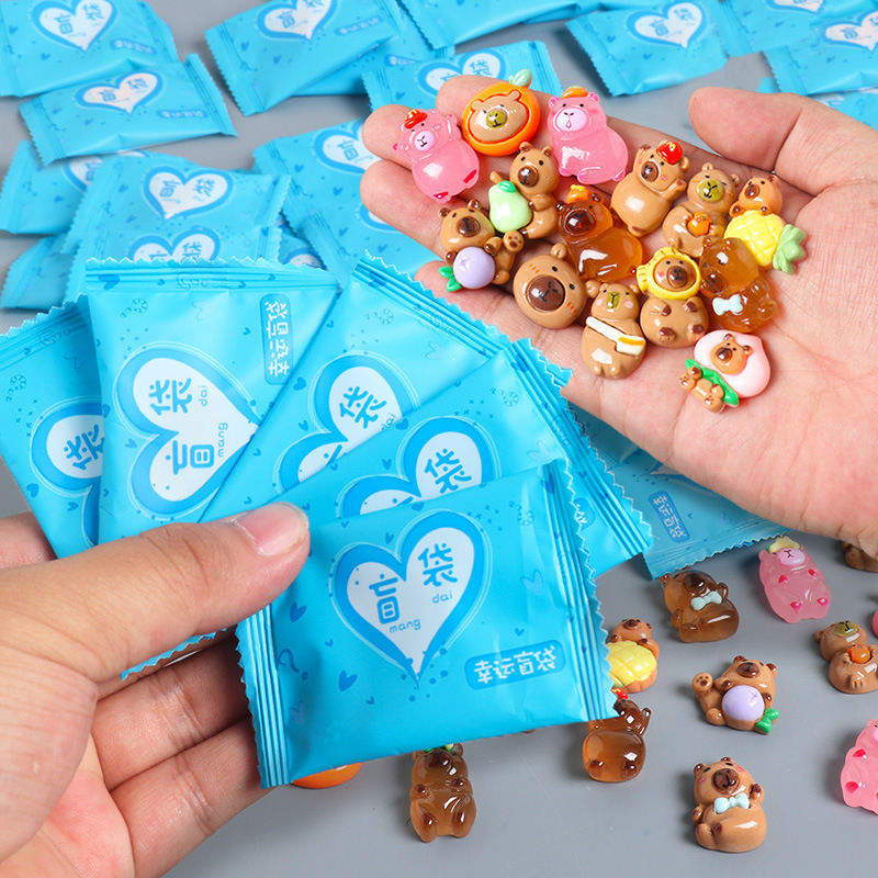 Mini Size Figura Capybara Ne Zha Cos Animal Food Saniro Turtle Resin Plastic Anime Figure Mystery Blind Bag