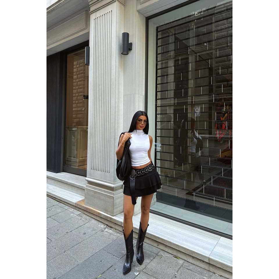 Mini Skirt for Girls Black Pleated Crocheted Woven Cotton Korean Style Ruffles Print Decorations XS Size Casual for Spring