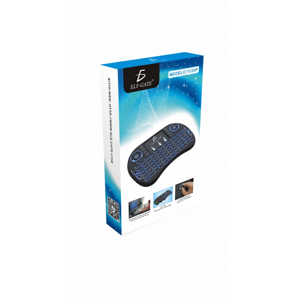 Mini Spanish Wireless Bluetooth Illuminated Keyboard With Touchpad 2 In 1, RGB Backlit, USB Rechargeable, ELEGATE TC09P, For Lap