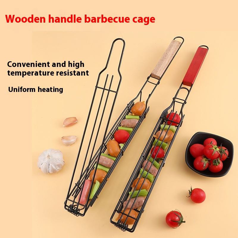 Mini Stainless Steel BBQ Outdoor Hot Dog Rack with Net and Basket BBQ Accessories