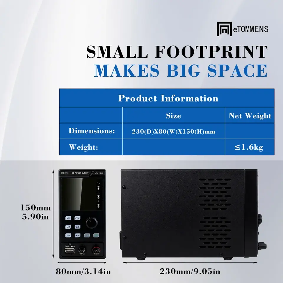 Mini Switch Programmable Power Supply with Adjustable 0-30V and 0-10A Output Single Output for Electronics
