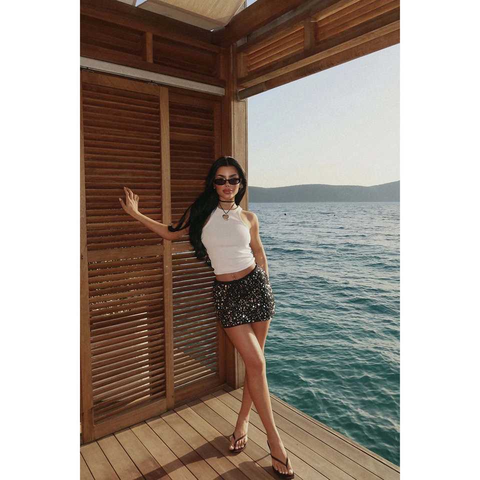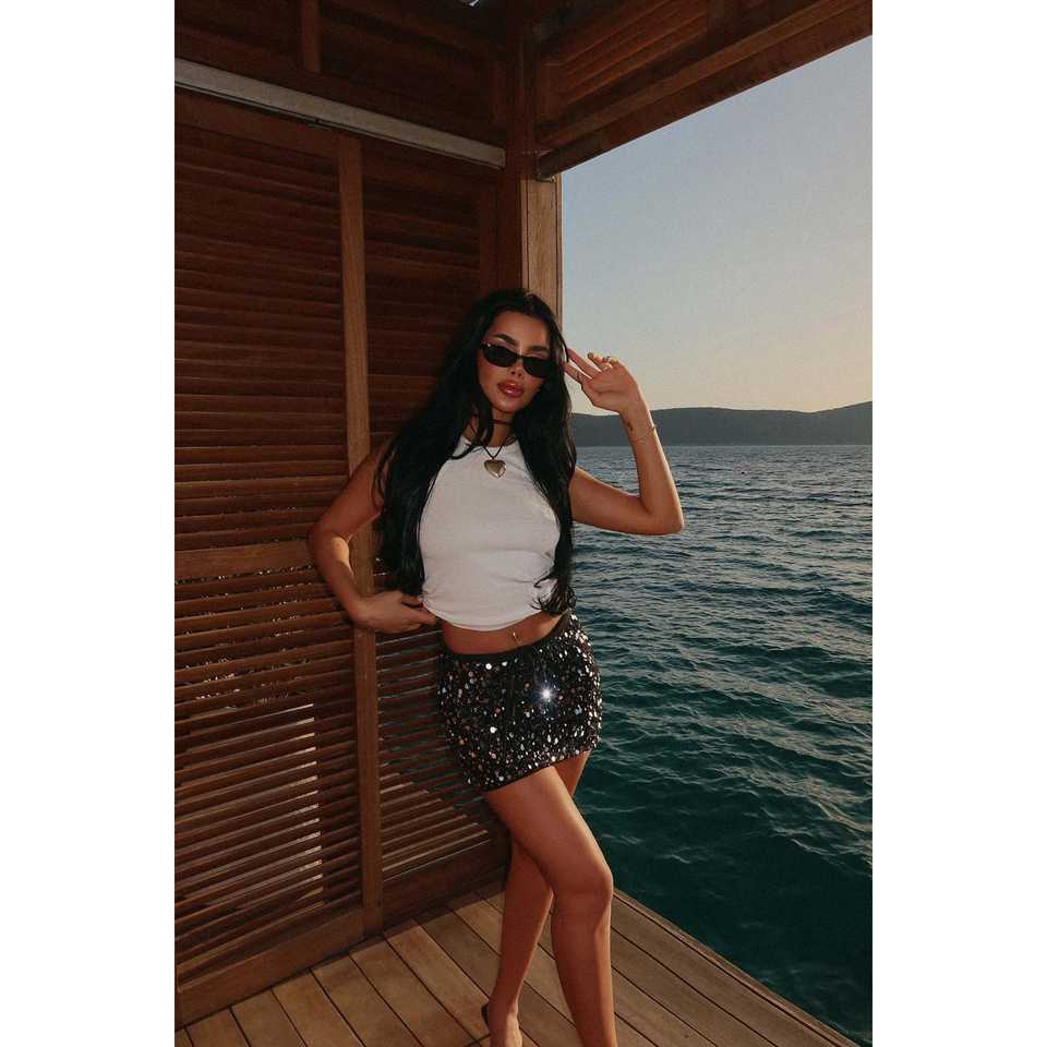 Blue Sparkle High Waisted Skater Skirt Pea Street