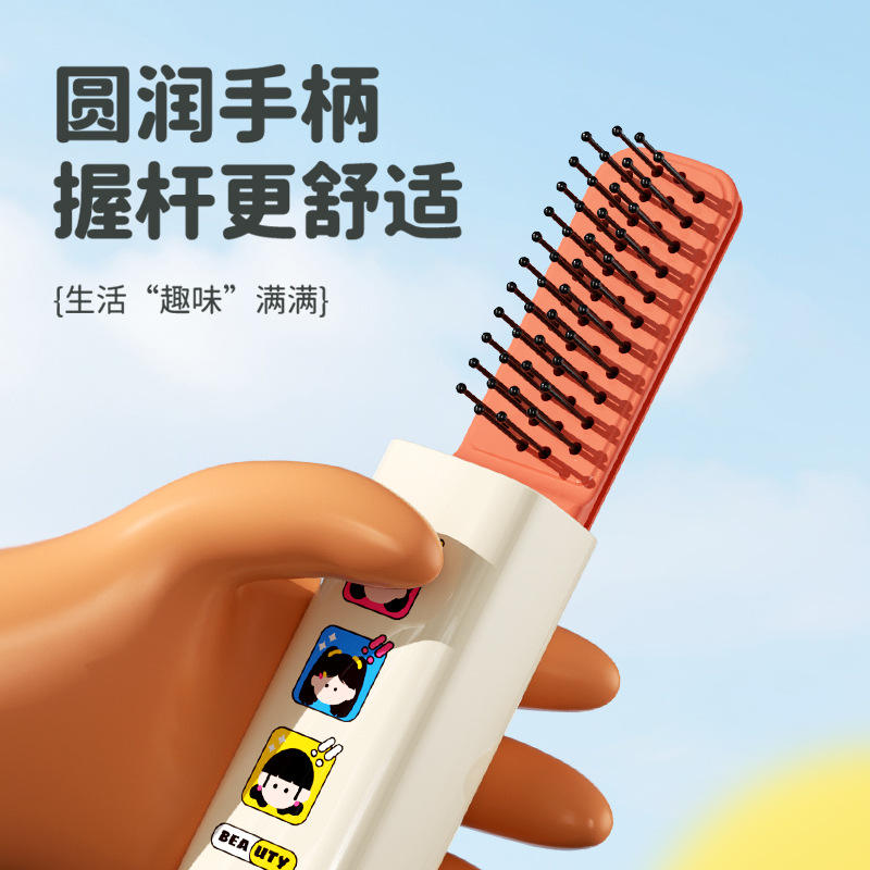 Mini Two In One Comb Portable Travel Retractable With Mirror Cartoon Design For Women Hair Care Styling Set 10-15Cm ABS Material