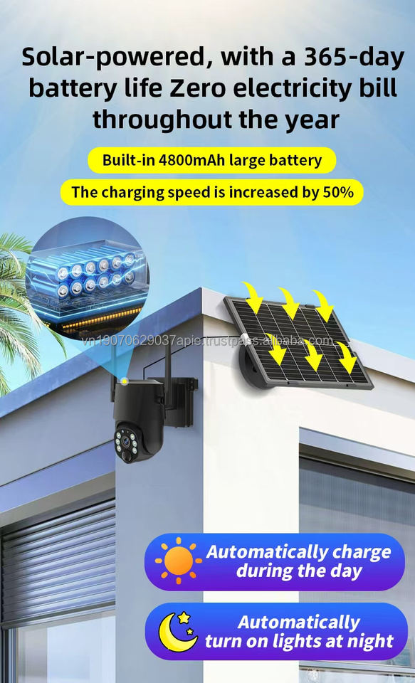 Mini V380 Pro 3MP Single Lens WiFi IP67 Outdoor Solar Security Camera Full Color Night Vision 4G Network Cloud Storage 1 Year