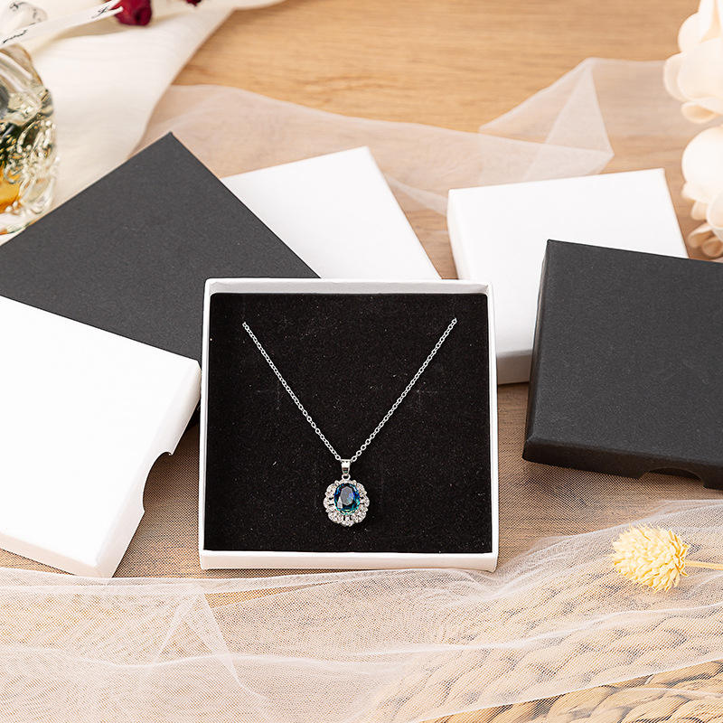 Mini White Flat Cardboard Paper Jewelry Box Display for Earrings Necklace Ring Bracelet with Foam Insert Finger Cuts